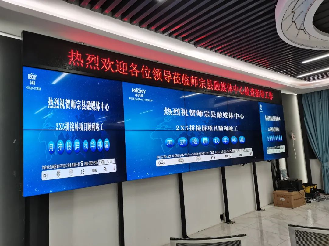 在此,華邦瀛再次感謝云南曲靖師宗縣融媒體中心的信任和支持;深圳華邦瀛科技是一家專業致力智能商顯產品研發設計、生產銷售。上門安裝為一體的國家高新技術企業,是國內知名的液晶拼接屏品牌,項目案例豐富、支持全國上門安裝,如您有任何關于顯示大屏的技術疑問或者需求,歡迎隨時咨詢我們。