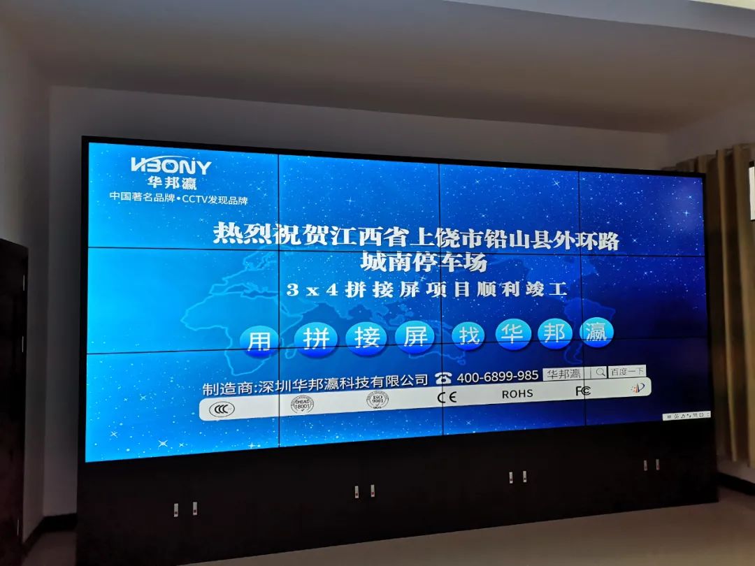 近日,鉛山縣外環路城南停車場引入華邦瀛液晶拼接屏作為智慧停車收費系統的監控大屏設備,以便為了更好地對停車場車出入、場內車流引導、收取停車費等進行智能化管理;車輛出入信息記錄可在液晶拼接大屏幕上實時顯示、隨時調取;實現車輛出入和場內車輛的動態和靜態的綜合管理。